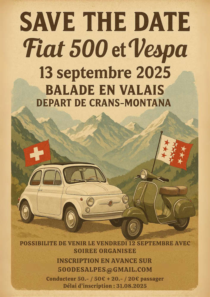 21e édition de la rencontre d’amateurs de la Fiat 500 et Vespa « Oldtimer » à Crans-Montana (Suisse).