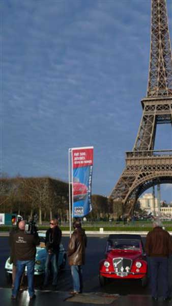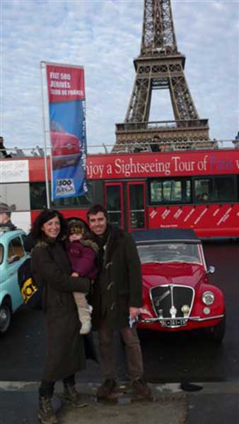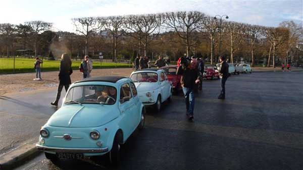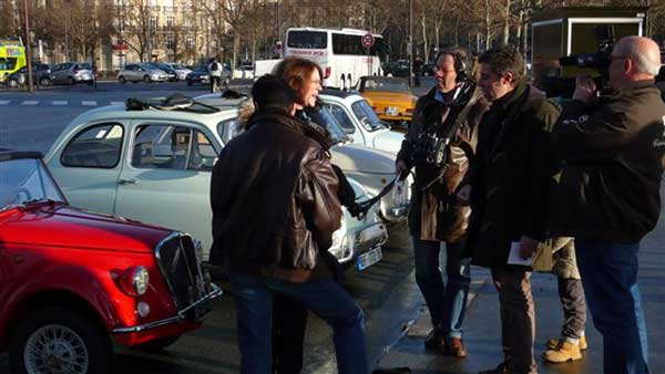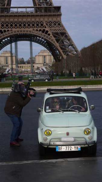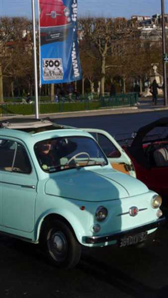 Dimanche 5 janvier, invités au pied levé par Anna Tiger, 7 pimpantes 500 et une Gamine, plus en vedette américaine le spider 124 de Régis étaient au rendez-vous place Rueff, au pied de la Tour Eiffel, pour représenter dignement les 500 de France devant la RAI télévision italienne, en l’occurrence Filippo Golia, accompagné de son cameraman et son perchman.