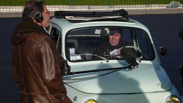 Le soleil, qui a toujours eu un faible pour les 500, s’est allumé au début du tournage pour s’éteindre juste après ! William, Georges et Anna se sont prêtés au jeu de l’interview, en français et en italien, sous les yeux amusés de Marco, Jean-Baptiste, Régis, Luca et Gildas (pardon pour ceux que j’oublie). L’épouse et les deux bambini de Filippo ont eu droit à un petit tour de manège en 500 pour clore l’évènement tandis qu’Anna nous régalait de galette des rois et de jus d’orange. Le résultat est une émission « la 500 dans le monde » diffusée à la RAI !