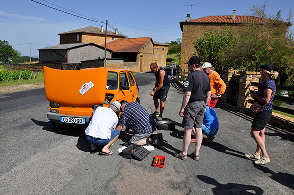 Pour cette édition, festival de pannes 19 ont été répertoriées ! Du condo qui lâche, aux freins qui fuient en passant par la panne mystère, la crevaison.....