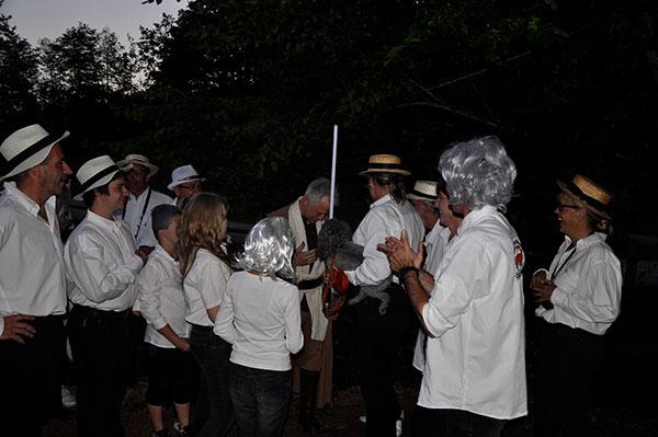 Petite surprise réservée à notre hôte, nous nous somme tous déguisés en « Bruno Lacoste » : cheveux blancs, chemise blanche, pantalon foncé et baskets. Bruno était au courant d"un déguisement donc il est arrivé en Jedi !
