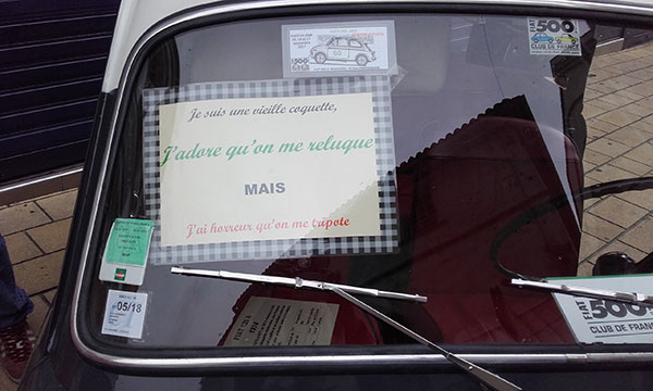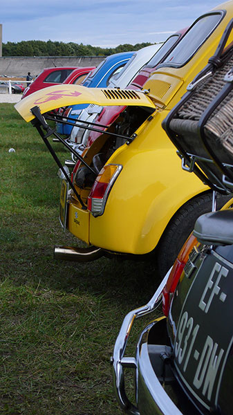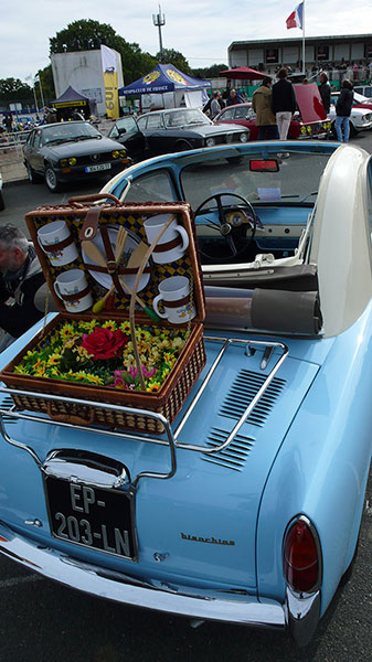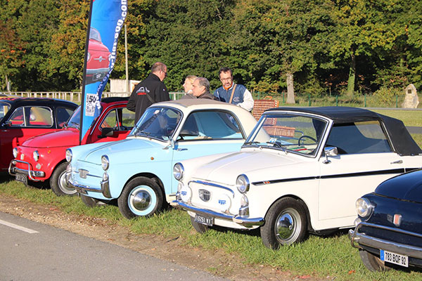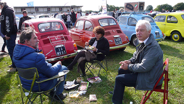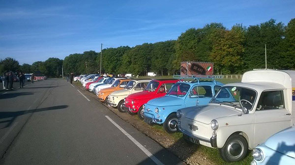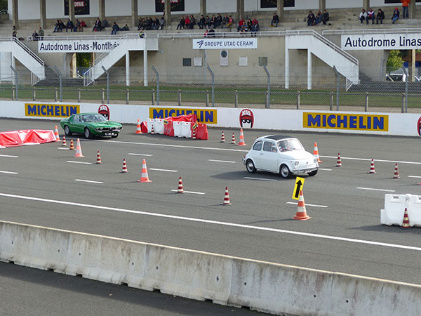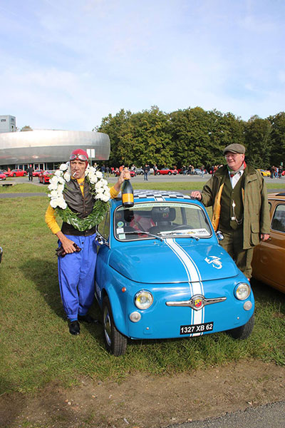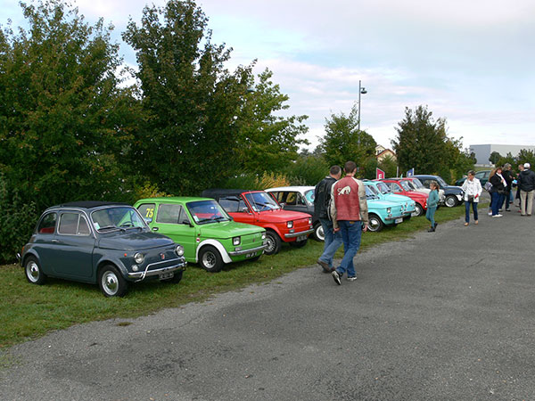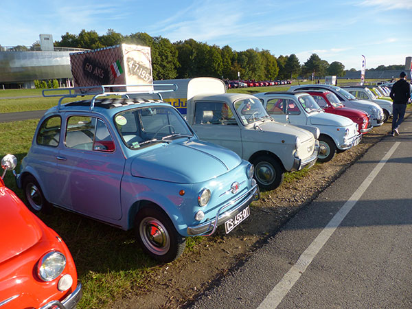 Le dimanche, c’est « exposition statique » dans l’espace club, à deux pas du circuit. Dix 500, 126 et Lutèce alignées comme à la parade à l’entrée de la zone pour marquer le 60e anniversaire de la 500 et de la Bianchina. Au gré des envies, visite du centre ville, de l’expo de planches originales de Michel Vaillant et dédicace par le fils de l’auteur. Tout le monde se retrouve autour d’un repas chaud bienvenu (fait un peu humide et frisquet) à la Siccilia. L’après-midi, direction le circuit pour les uns et poursuite de la visite de la ville pour les autres.