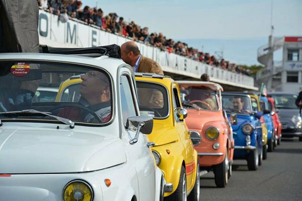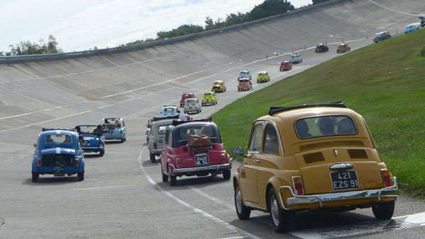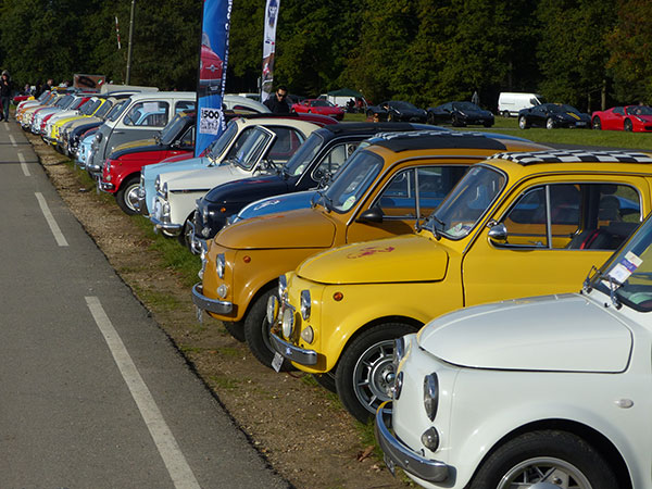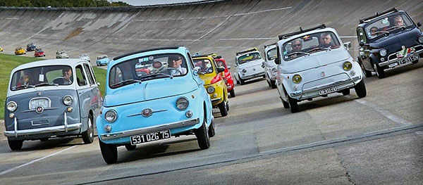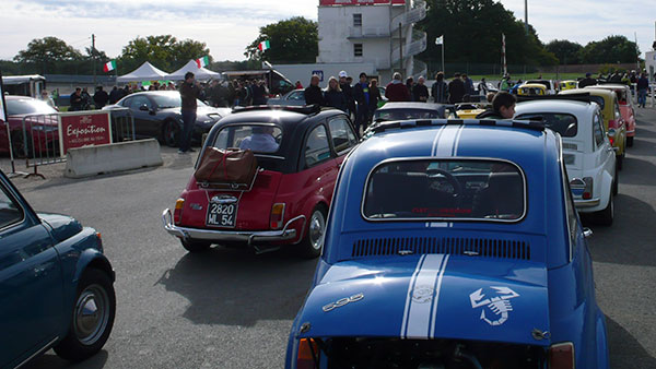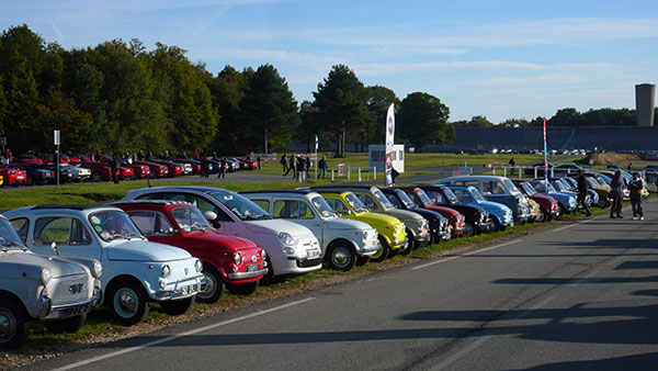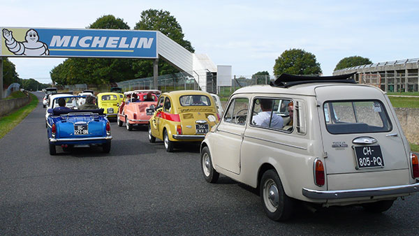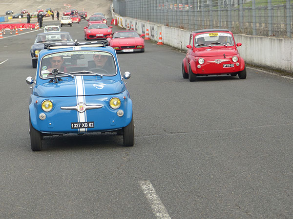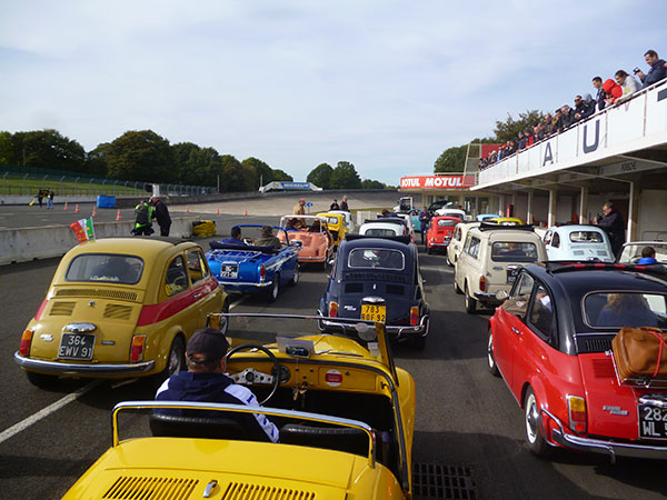 Ferrari a fêté ses 70 ans et la Fiat 500 ses 60 ans. Beau spectacle ! Les Fiat 500 et quelques uns de ses dérivés ont envahi la piste !