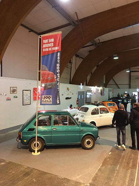 Le Fiat 500 et dérivés club de France est toujours fidèle au salon Champenois de la voiture de collection à Reims.