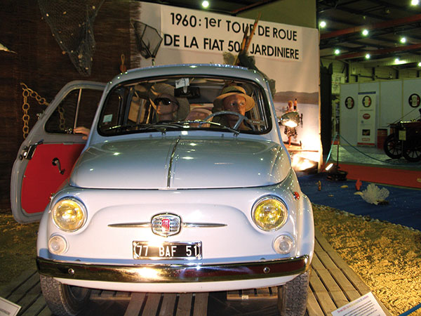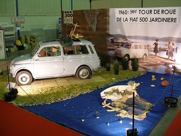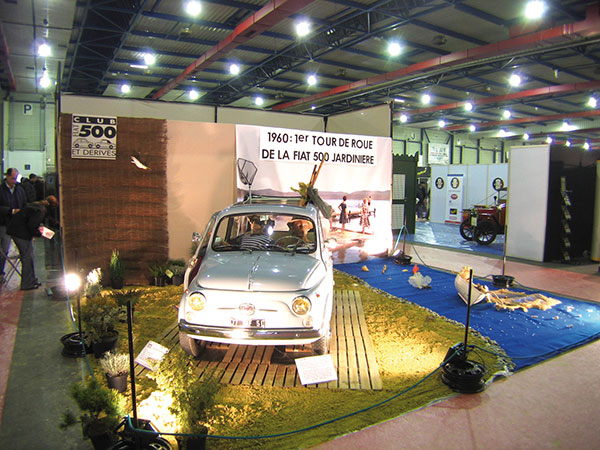 Cette année, le thème du salon de Reims était : « 1er tour de roue ». C’est tout naturellement que nous avons mis à l’honneur la Fiat 500 Jardinière qui fête, en 2010, ses 50 ans. La jardi exposée est celle de Dominique, notre trésorier.
