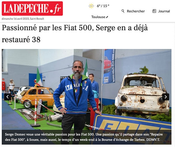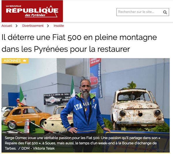 Cette année, Serge a mis à l’honneur la Fiat 500 qu’il a découverte et déterrée dans les Pyrénées et a fait le buzz dans la presse régionale !