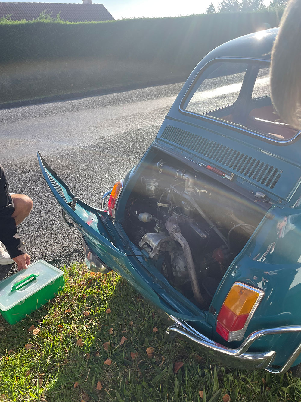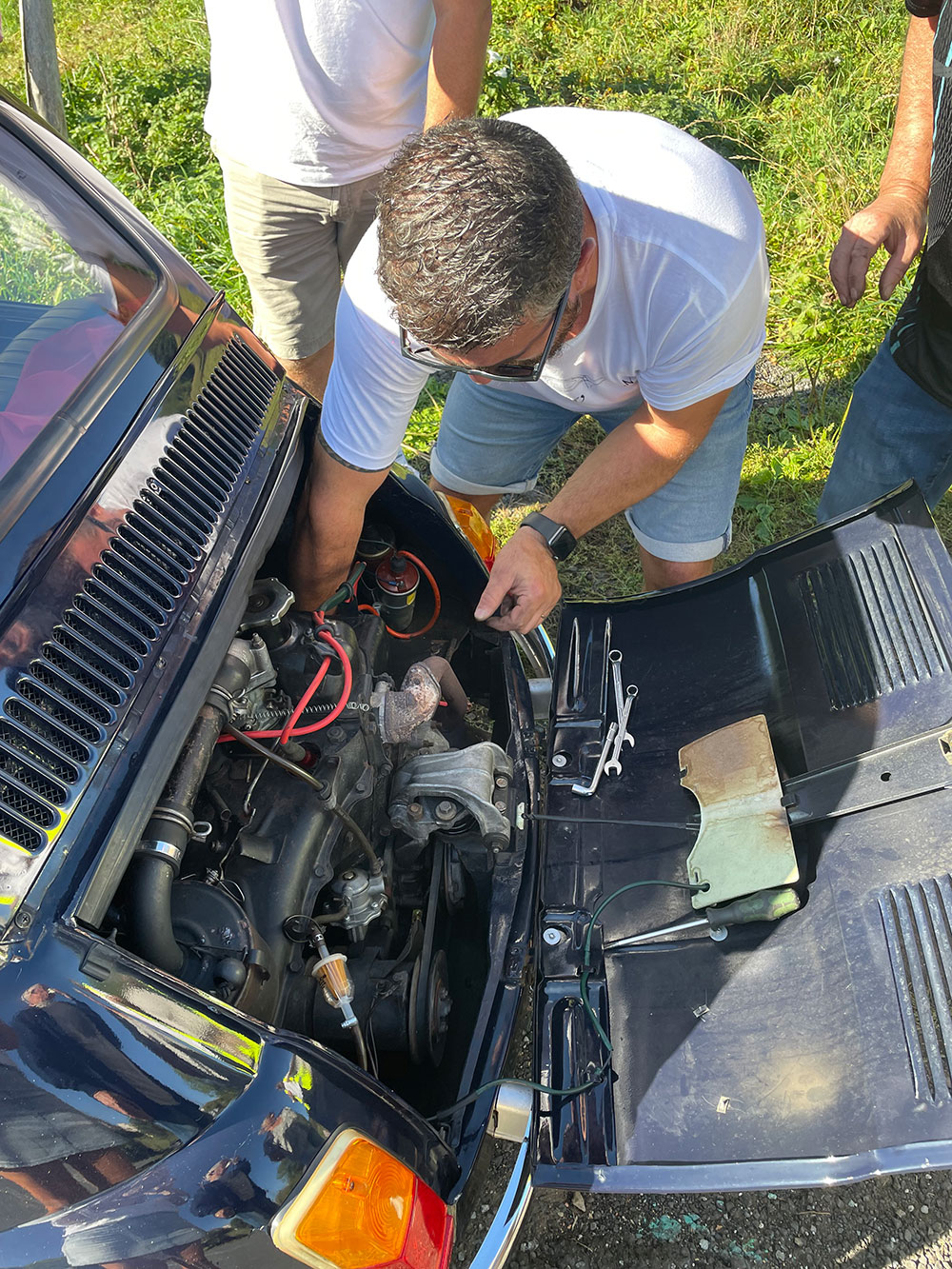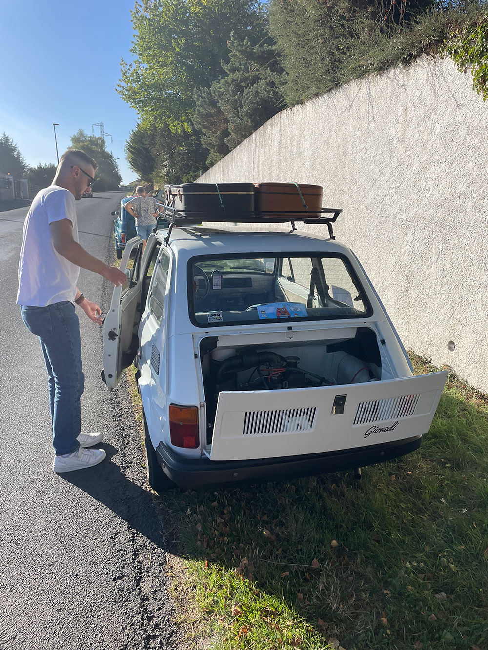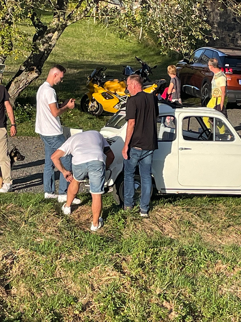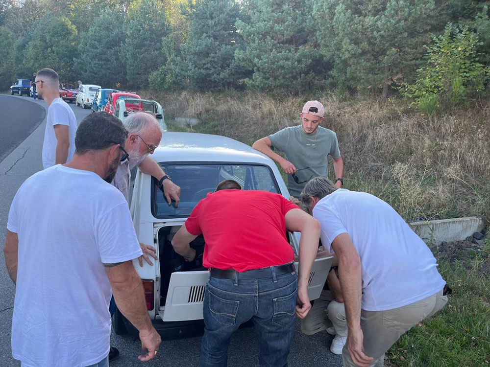 Durant le pique-nique et à la moindre occasion, les échanges sont allés bon train. Ils ont permis de mieux nous connaître, découvrir les particularités de la Jardi de Franck et faire la connaissance d’un autre propriétaire de Fiat 127 arrivé impromptu sur le parking !