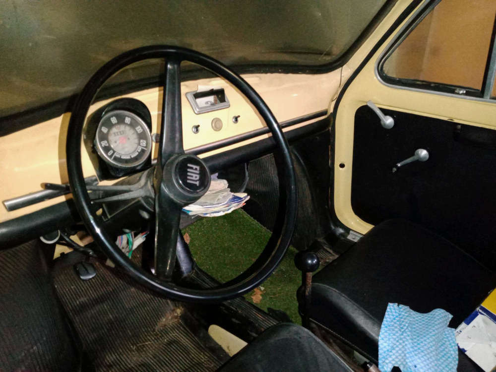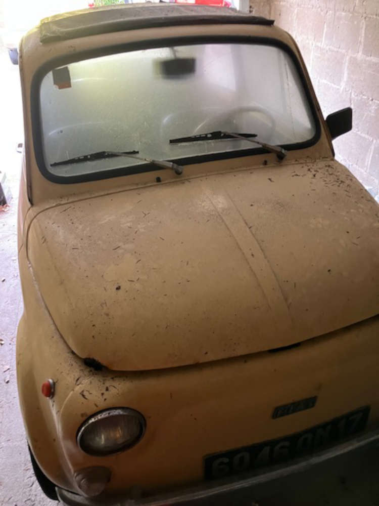Fiat 500 L, première mise en circulation 24/10/72, 66 000 kms, CG normale. Dernier CT (qui était ok) en janvier 2017. Le véhicule n’a pas roulé depuis cette date. À priori la batterie est HS