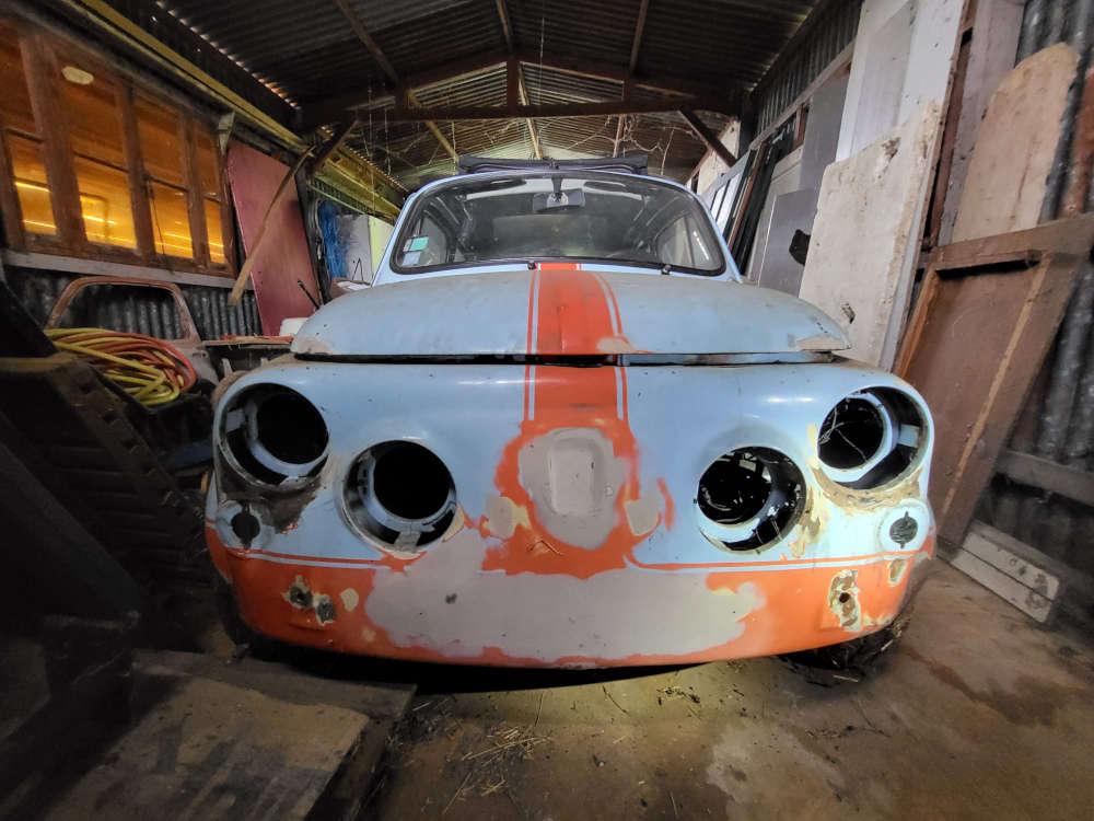 Caisse complète à restaurer, surtout carrosserie (corrosion). Capote Ok. Moteur 595 cm3 Ok mais pas tourner depuis quelques années.